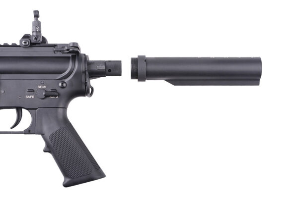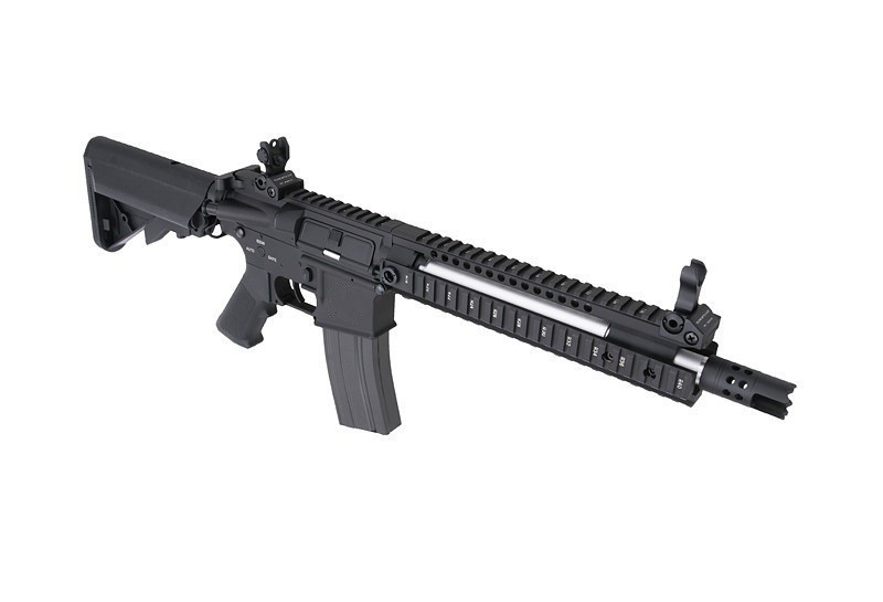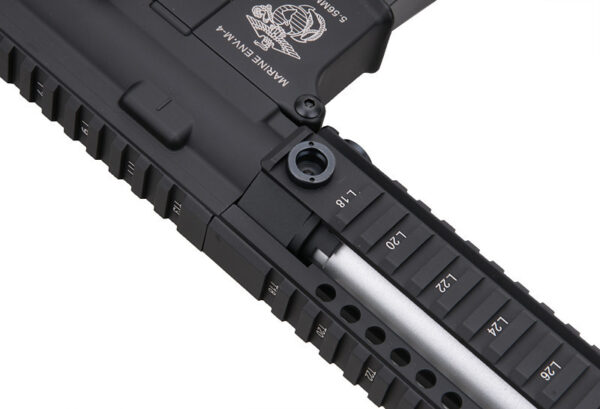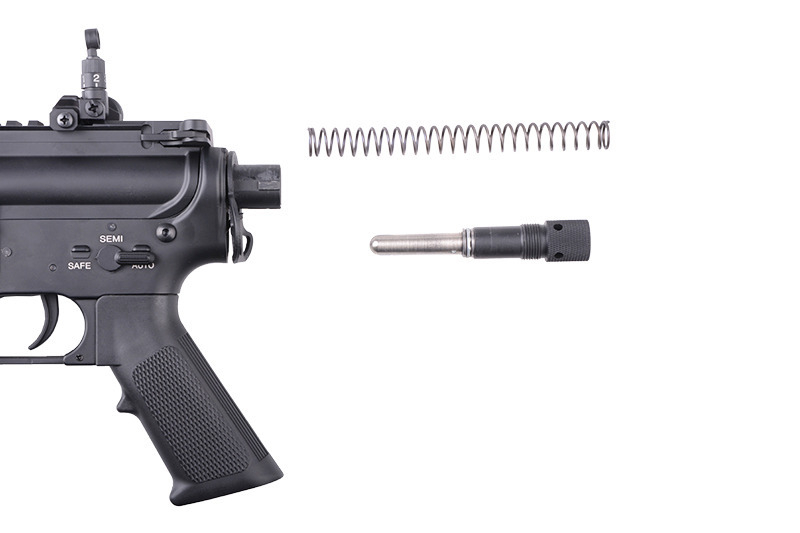 Replica este echipată cu o șină RIS superioară de 22 mm, bara de mână RIS și un stoc reglabil. Șina de sus RIS este prevăzută cu obiective de fier din metal cu flip-up, care pot fi detașate liber pentru a face loc fixării unui dispozitiv de țintire optoelectronic ales. Datorită stocului extensibil cu un tampon anti-alunecare, este posibil să se adapteze lungimea replicii la tipul de caroserie și preferințele utilizatorului. Un hider flash standard se bazează pe un fir stânga de 14 mm, care permite fixarea unui amortizor la locul său. Pentru a spori realismul jocului, replica dispune și de un mecanism operațional de prindere a șuruburilor.