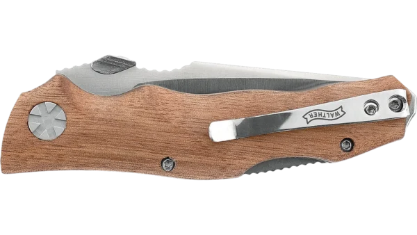 Daca sunteti in cautarea unui cutit compact care sa nu faca compromisuri in ceea ce priveste performanta, fratele mai mic al Walther Adventure Folder Wood (AFW) este pentru dvs. Cu lungimea sa de doar 170 mm si greutatea redusa de 80 de grame, Walther AFW 2 este ideal pentru transportul zilnic (EDC). Lama sa varf de sulita este fabricata din otel AUS8 de inalta calitate, cu finisaj satinat si cu un blocaj fiabil. La fel ca fratele sau mai mare, AFW 2 are un maner din nuc mat cu adancituri pentru a oferi o prindere ideala. Si cand nu folositi AFW 2, il puteti pastra in tocul din piele de inalta calitate sau il puteti purta cu clema in buzunarul pantalonilor.