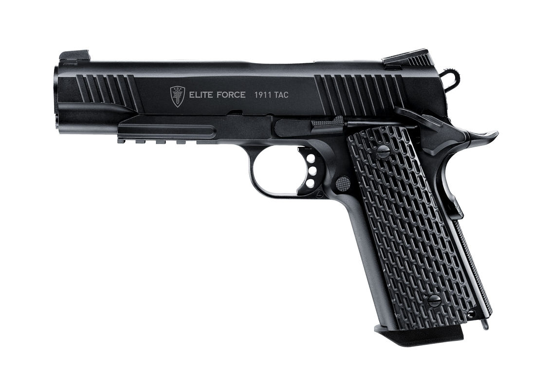 Pistolul Elite Force 1911 Tac produs de firma Umarex sub licenta Elite Force este un pistol airsoft Full Metal cu Blow-back bine finisat si echilibrat ce foloseste capsulele de CO2 pentru propulsia bilelor de 6mm
