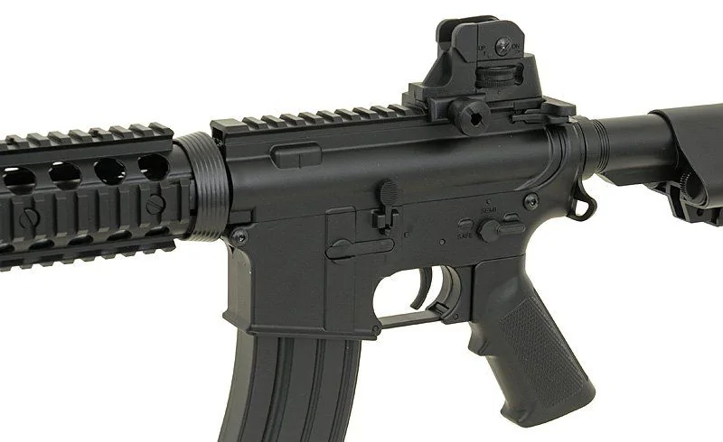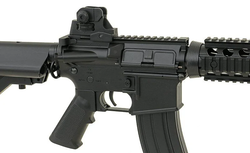 M4A1 face parte din familia M4 fiind unul dintre derivatele acesteia. Avantajul principal cand vine vorba de aceste replici airsoft este faptul ca sunt extrem de custom friendly. Pentru pasionatii de unicitate, aceste replici permit montarea accesoriilor (red dot, luneta, grip, laser etc) fiind echipate cu sine ris. De asemenea, materialele din care sunt facute le fac grele si autentice, precum cele adevarate conferind astfel realism jocului de airsoft