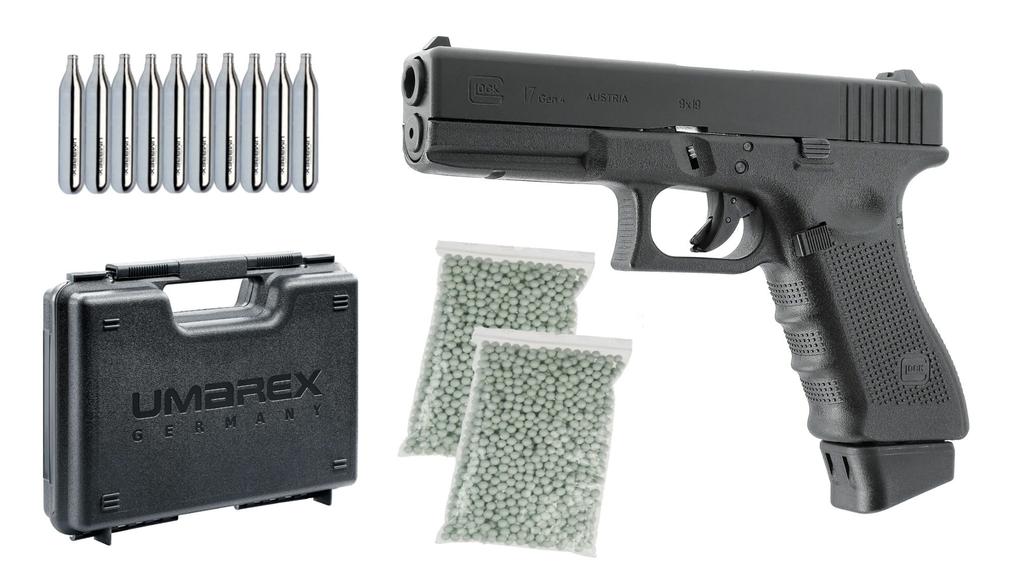 Set complet Pistolul airsoft GLOCK 17 Gen4 este o replică autentică a celebrului model GLOCK 17, produs de firma UMAREX sub licență oficială GLOCK. Realizat din metal și ABS rezistent la șocuri, acest pistol airsoft oferă un echilibru perfect între durabilitate și performanță. Slide-ul metalic (mânerul mobil) și ghidajul mansonului adaugă o rezistență suplimentară, asigurând o experiență autentică de utilizare.