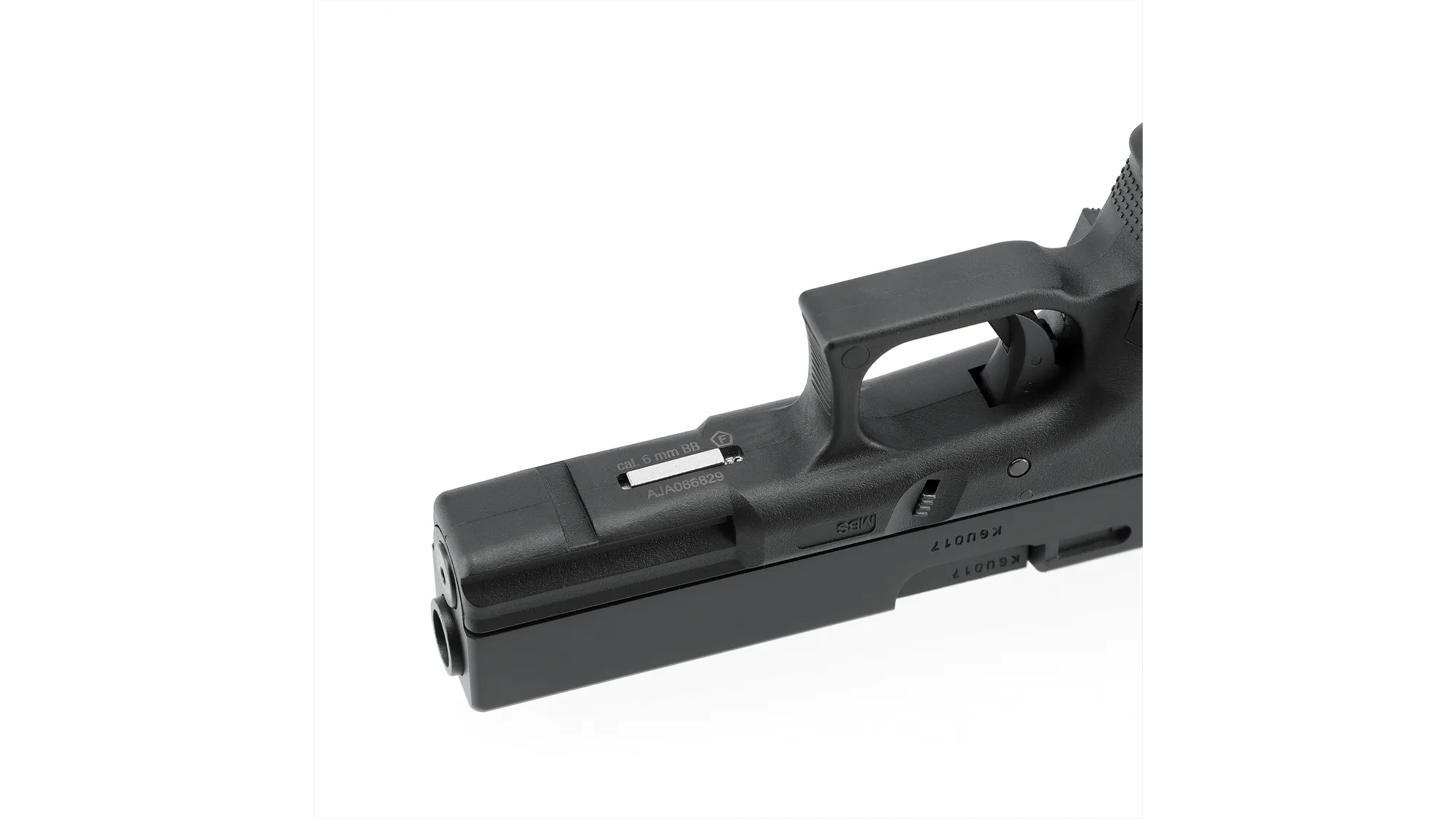 Inscriptiile originale Glock pot fi regasite pe toata suprafata pistolului , atat pe manerul tactic cat si pe slide-ul metalic .